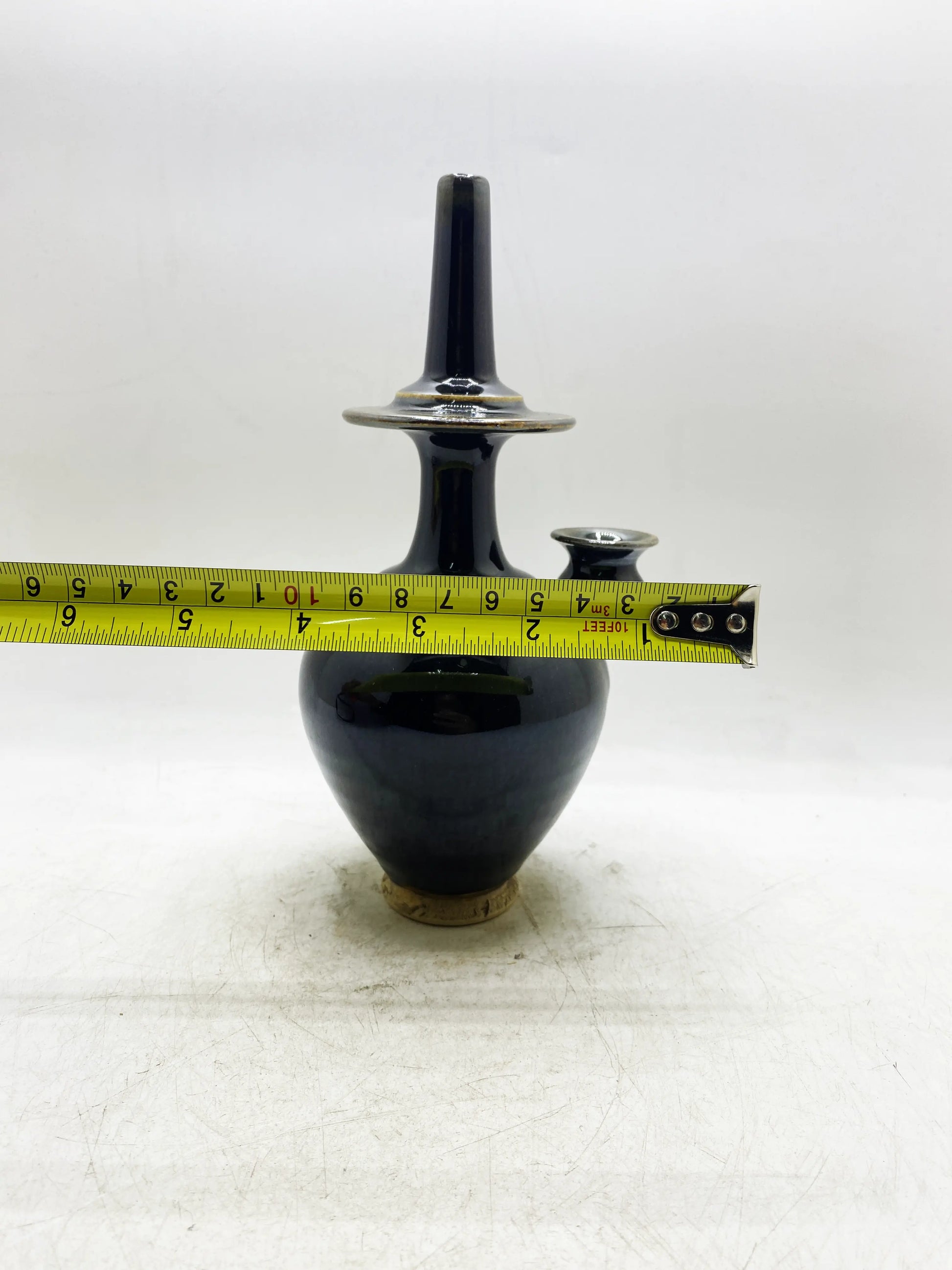 - Handwerk & Material : Hergestellt mit der ikonischen schwarzen Glasur der Cizhou-Brennöfen (hoher Eisengehalt in der Glasur, der nach dem Brennen bei hoher Temperatur eine tiefschwarze, glänzende Textur bildet); der Scherben besteht aus dem typischen beigen groben Ton der nördlichen Brennöfen und ist mit vergoldeten Mustern verziert (was einen zweiten Brennvorgang erfordert, ein komplexer Prozess);
