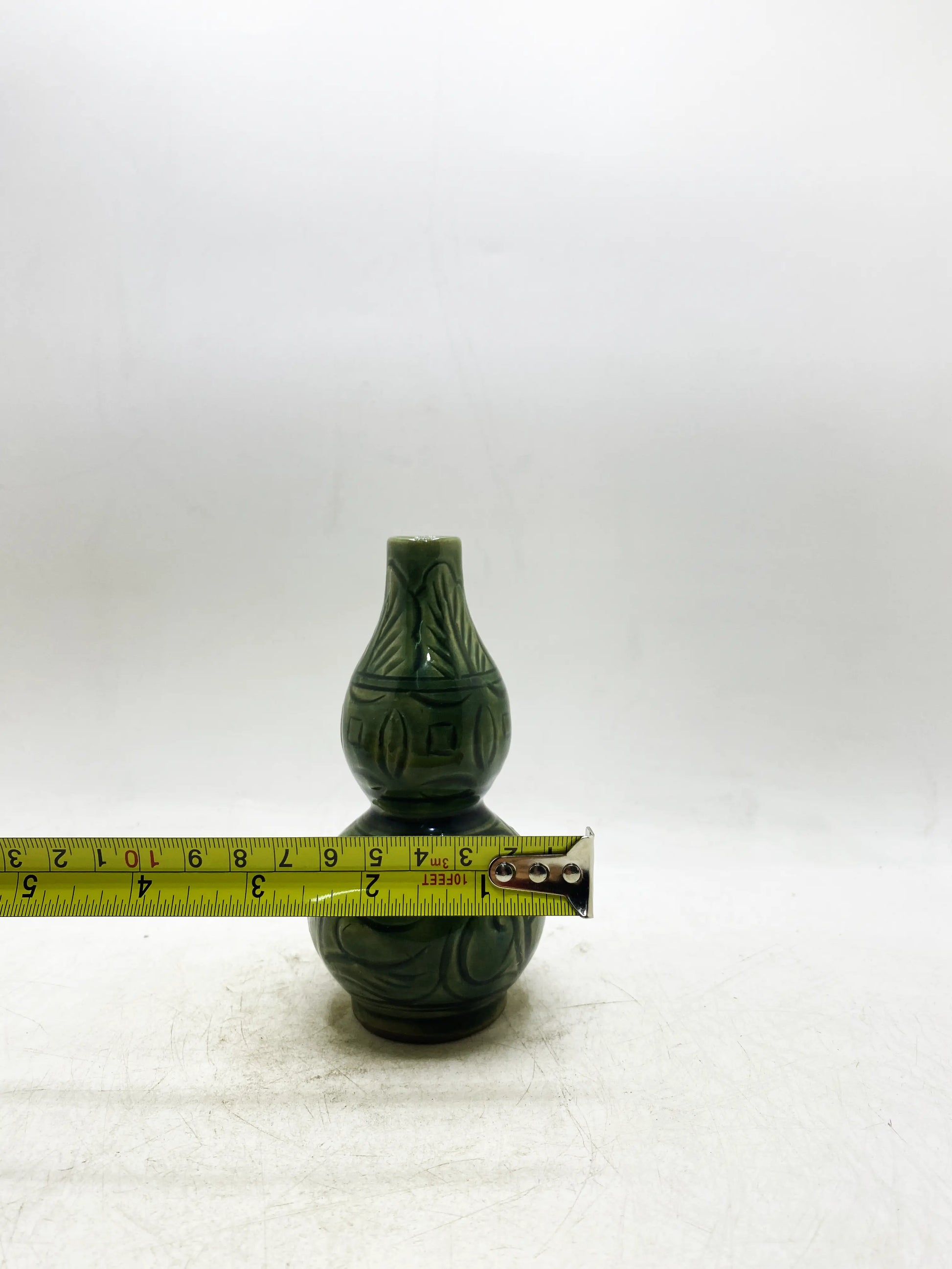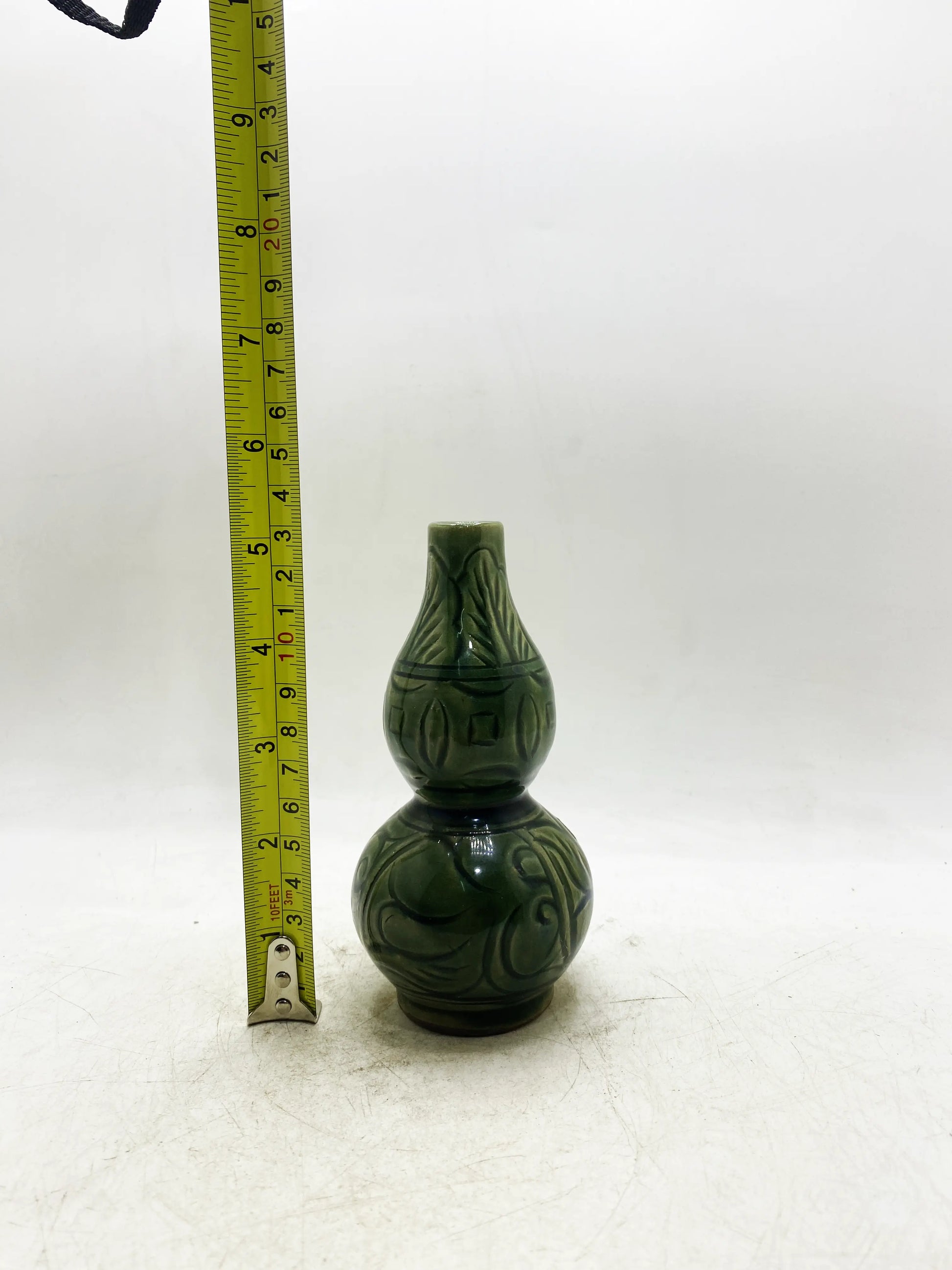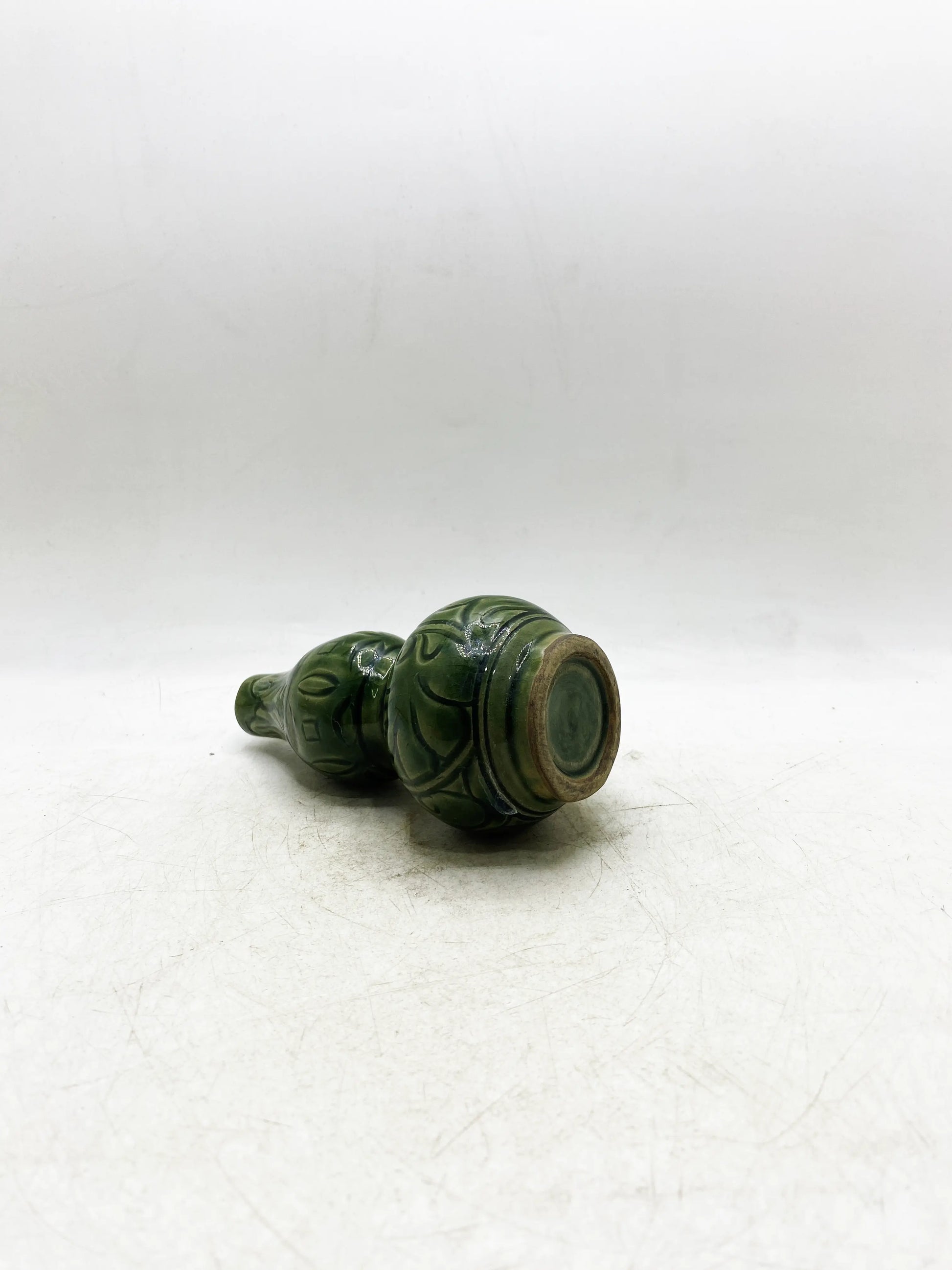 工芸と材質:龍泉窯の粉末青磁(翡翠のような温かみのある色)、ひょうたん形の胴体(「福と繁栄」の同音異義語、縁起の良い意味)、腹部に滑らかな線で絡み合った枝の模様が彫られています。