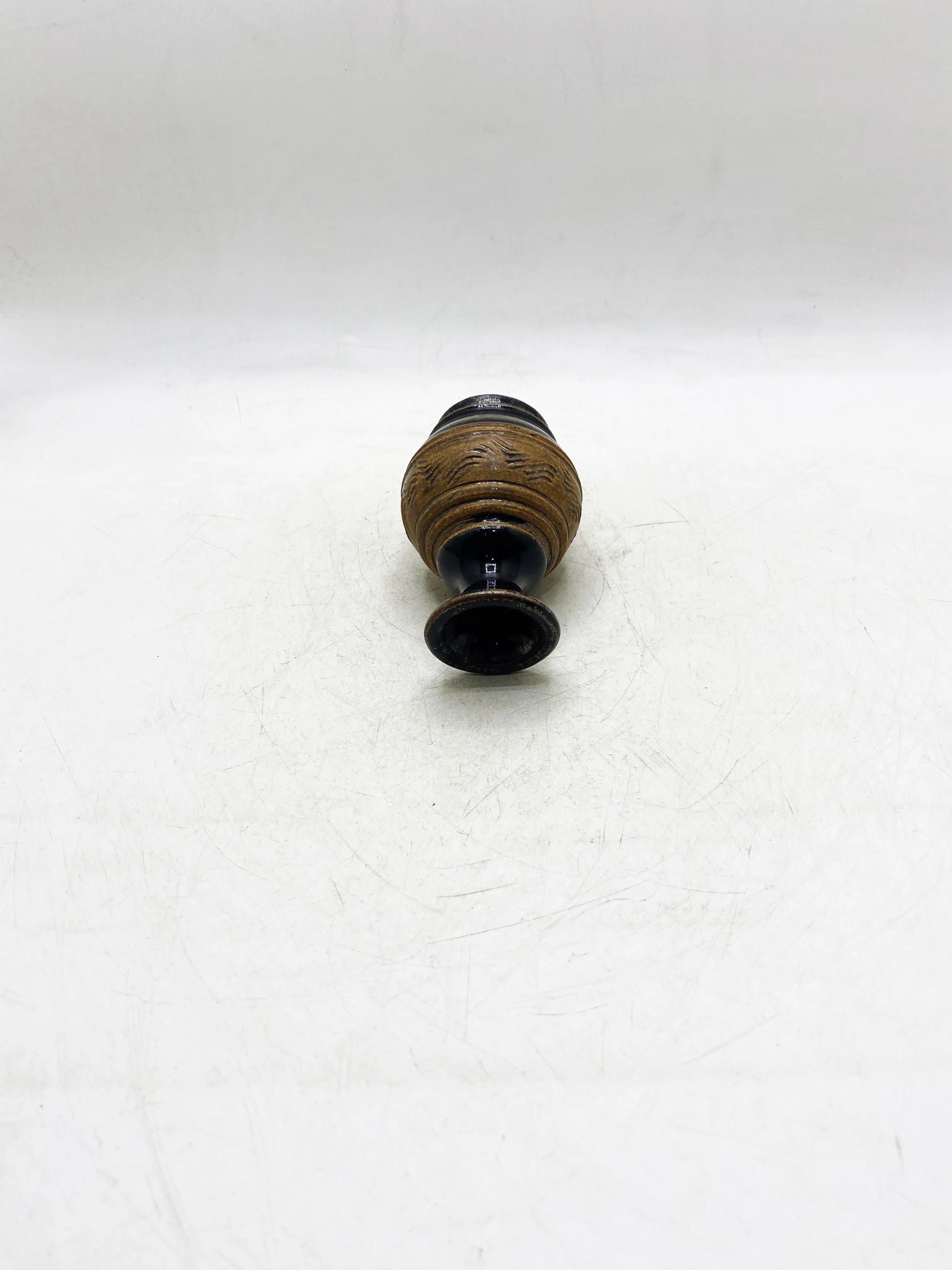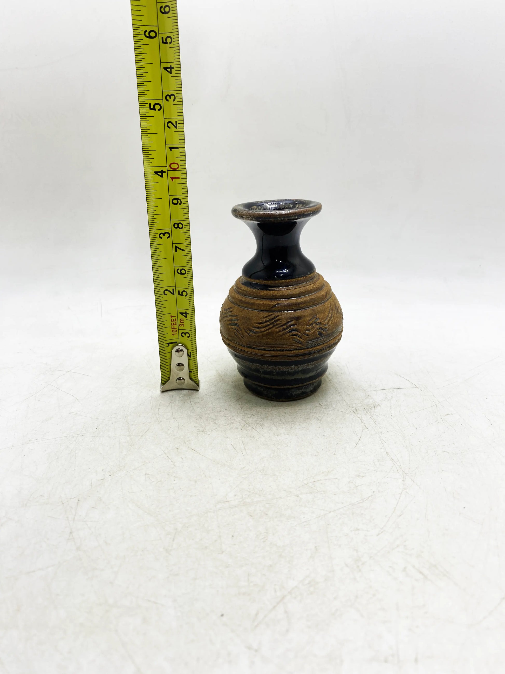 工芸と材料: 黒釉のベース、ソース色の彫刻装飾、北方窯の粗い粘土。