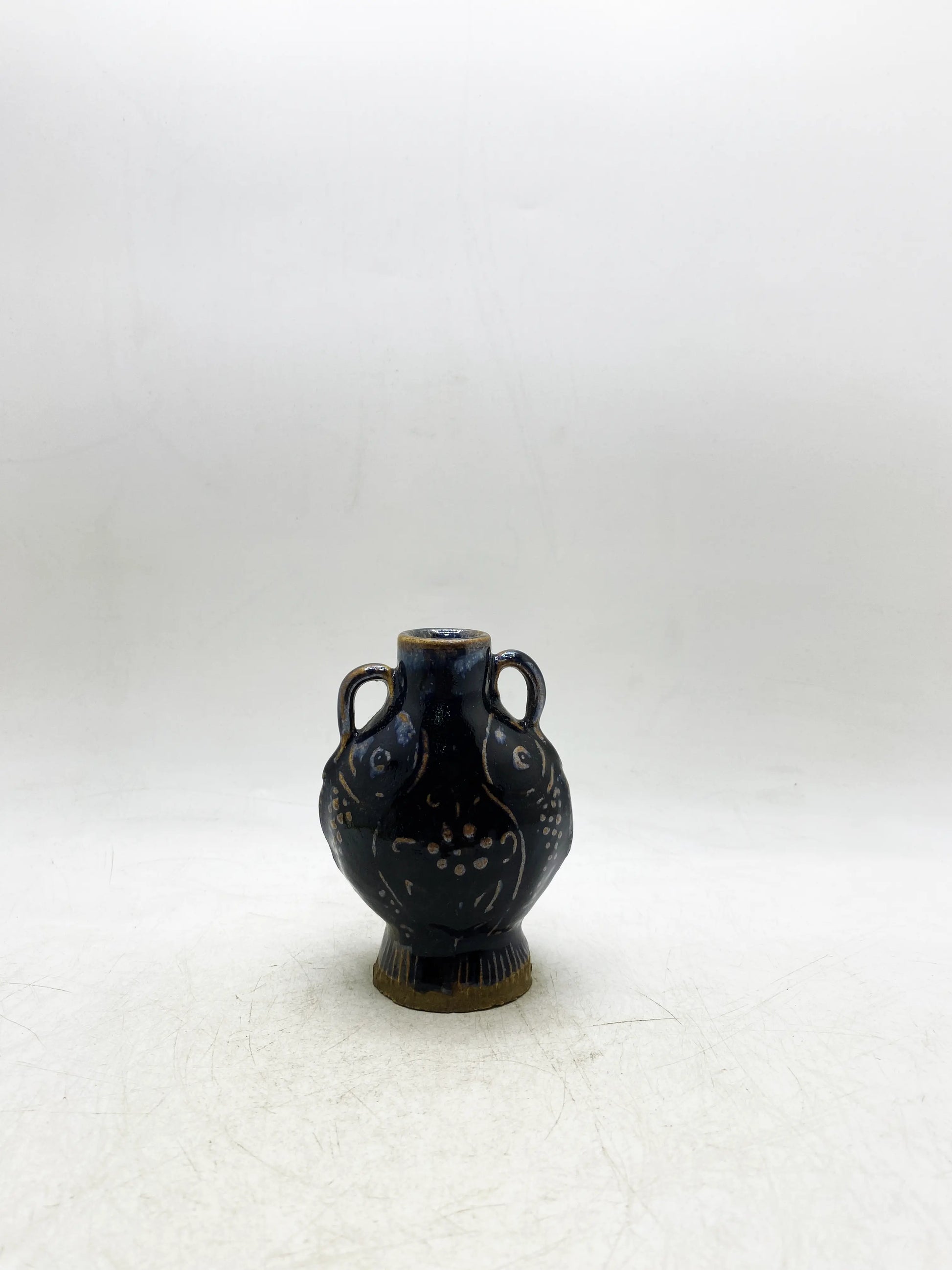 Ming Dynasty Black Glaze Carved Double-Fish Double-Ear Vase