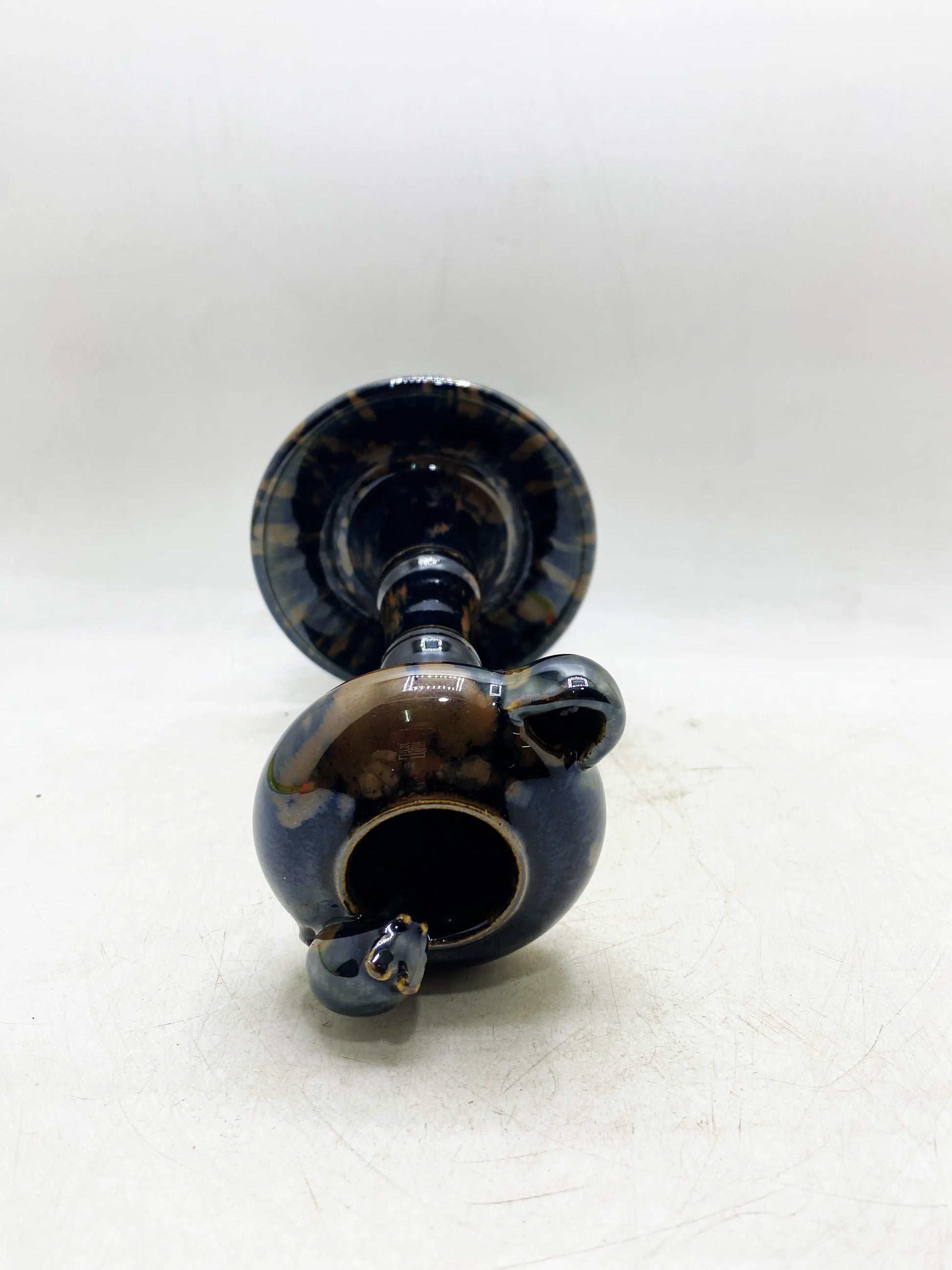 1. Rarity: Limited surviving intact Qing Dynasty black glaze oil lamps with handles, especially those with decorative bamboo joint shapes;