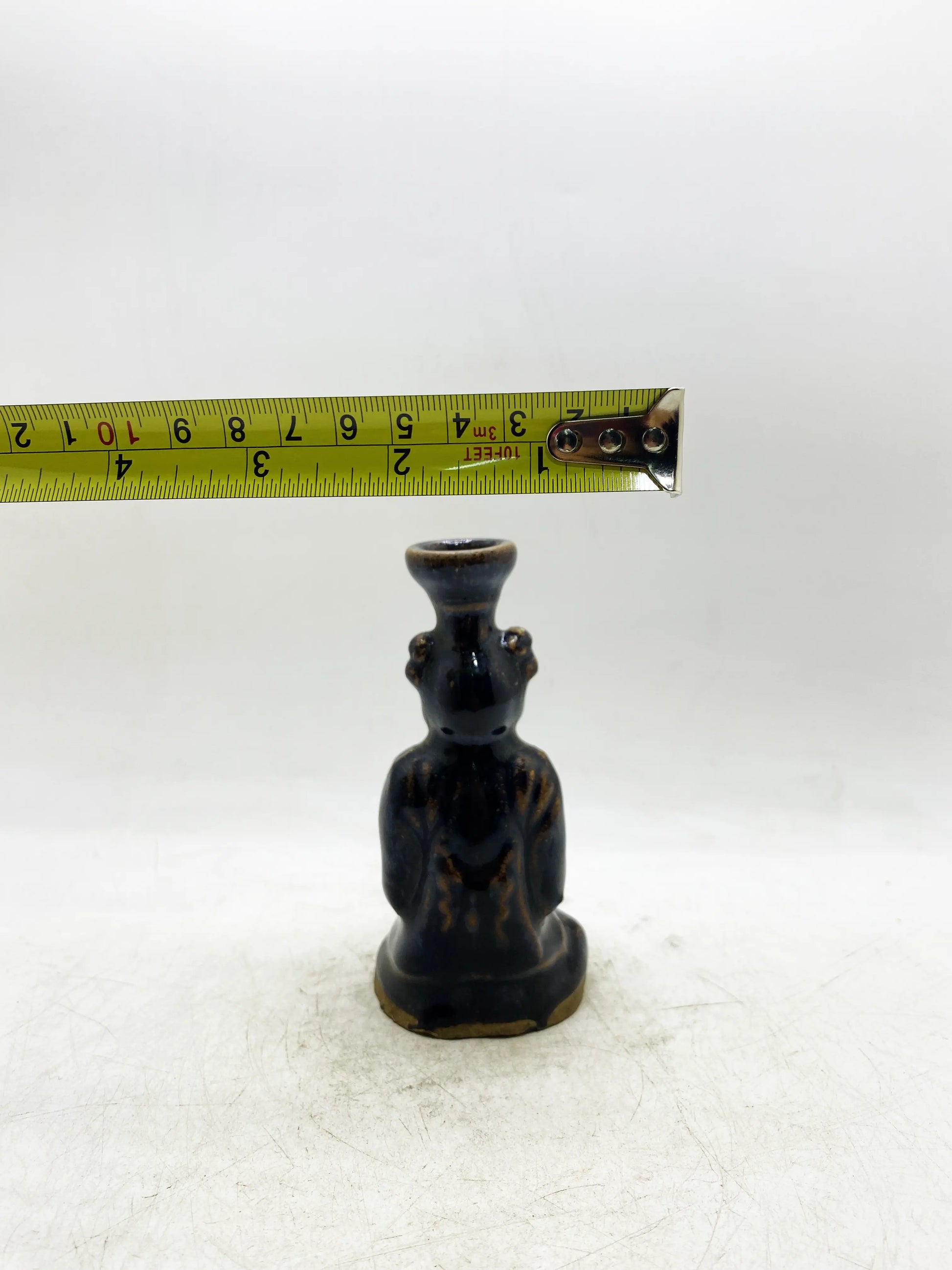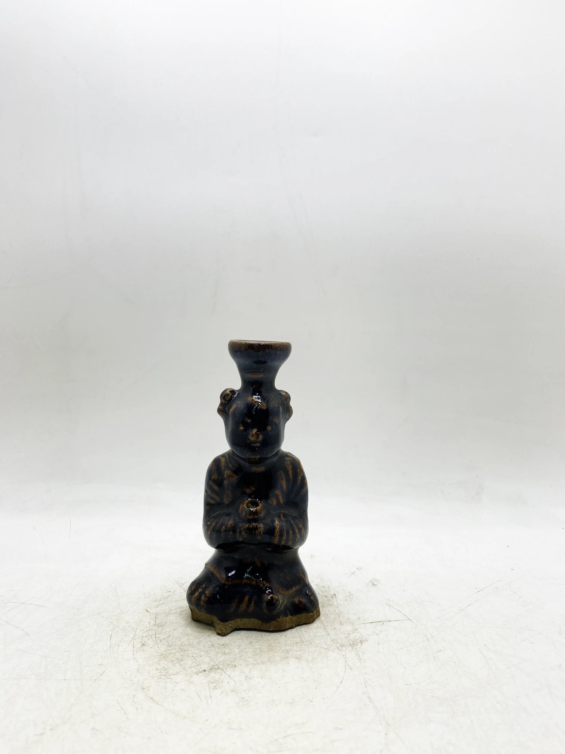 Qing Dynasty Black Glaze Brown-Painted Figure-Form Candlestick